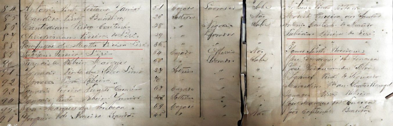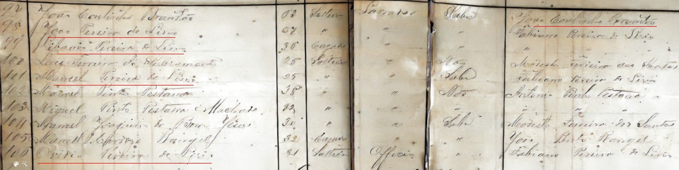 Em 1878 estava com 35 anos, solteiro, lavrador, sabia ler e escrever, filho de Fabiano Pereira de Lirio,