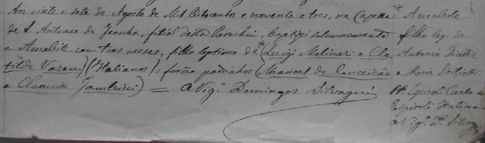 - Amabile, batizado com 3 meses de idade no dia 27/08/1893, na Capela de Santo Antonio de Iconha-ES