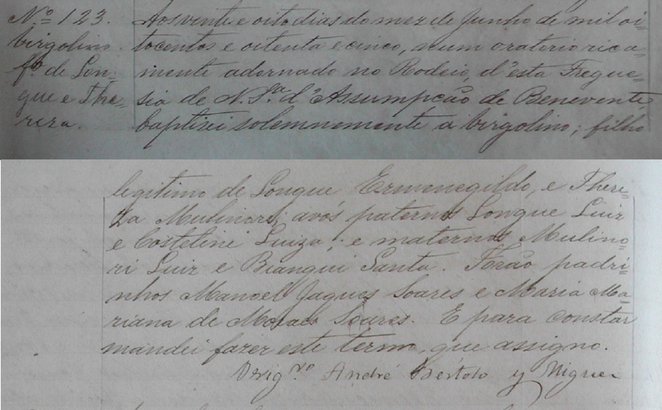 - Virgolino, batizado no dia 28/06/1885, num oratório ricamente adornado no Rodeio da Freguezia de Nossa Senhora da Assumpção de Benevente-ES