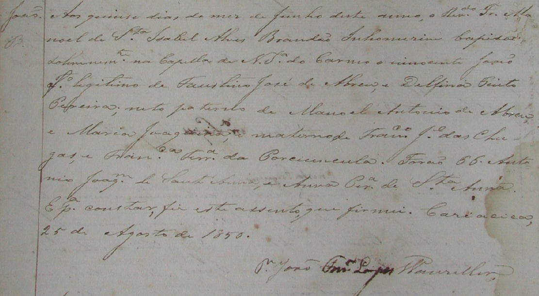 - João (B), batizado no dia 15/06/1856, em Cariacica-ES