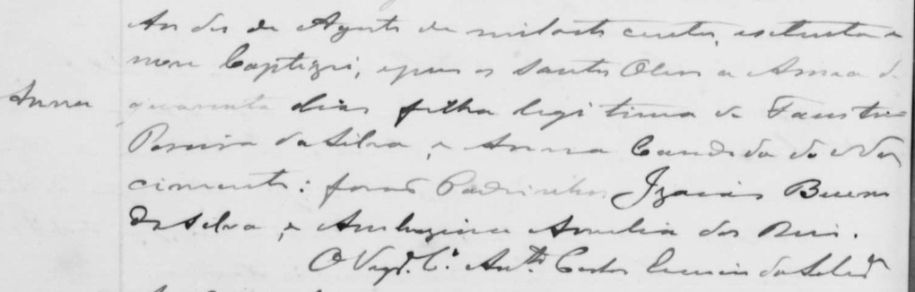 Anna, batizada no dia 10/08/1879, Natercia-MG