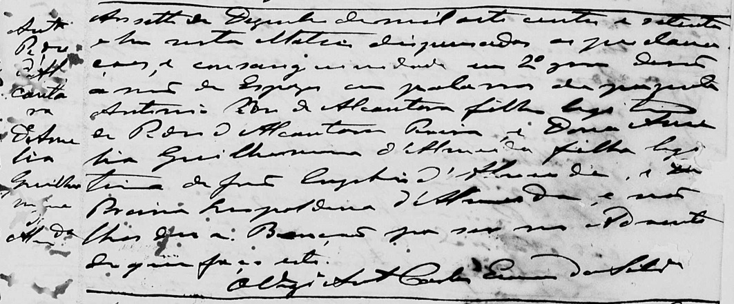 Pedro de Alcantara Pereira c.c. Maria Inocencia de Jesus (Maria Jose do Nascimento), filha do Capitão Posidorio ... de Carvalho e sua mulher Maria Escolastica Guimarâes