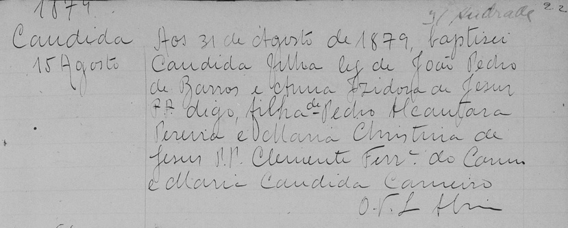- Candida, batizada no dia 31/08/1879, Santo Antonio do Amparo-MG
