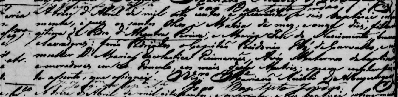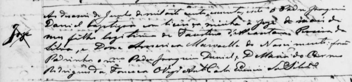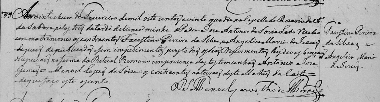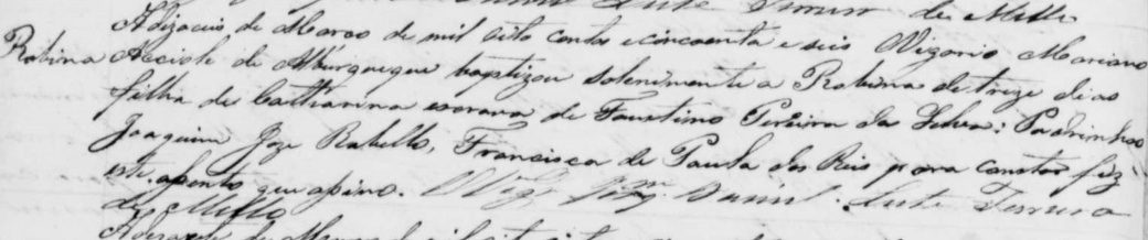 Padrinhos: Alferes Joaquim de Paiva e Maria Sirilia