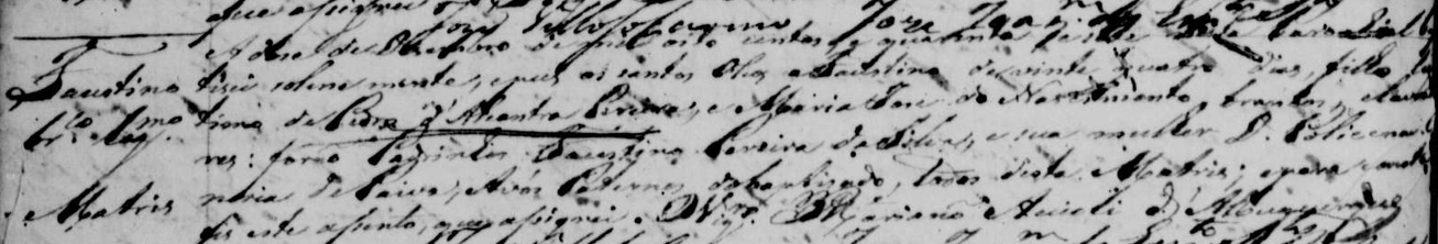 Padrinhos: Fastino Pereira da Silva e sua mulher Pulicena Onoria de Paiva (Avós paternos)