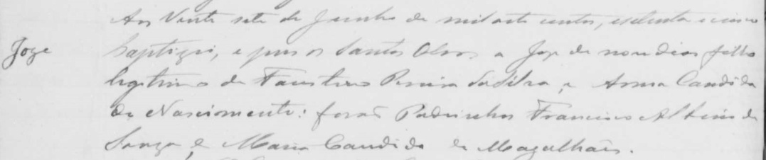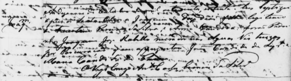 Padrinhos: Joaquim Jose Rabello, por procuração que apresentou João Candido de Siqueira e Maria Candida de Paiva