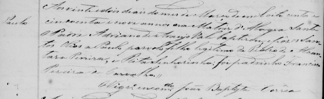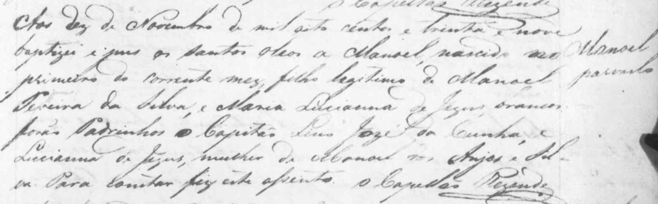 - Manoel, nascido no dia 01/12/1839, batizado no dia 10/12/1839, Itaverava-MG