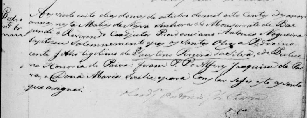 - Pedro, Batizado no dia 28/10/1819, na Matriz de Nossa Senhora de Monserrate de Baependi-MG