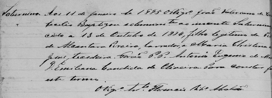 - Saturnino, nascido no dia 13/10/1884, batizado no dia 11/01/1885 - MG