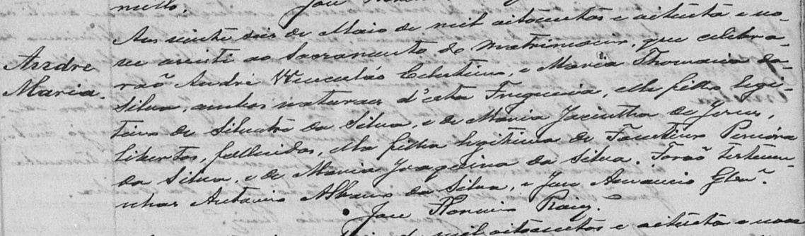 - Maria Francisca da Silva c.c. Andre Wenceslau Celestino, filho de Silvestre da Silva e Maria Jacintha de Jesus (Libertos - Já falecidos em 26/05/1879)