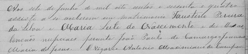 - (Hipotese) Faustino Pereira da Silva c.c. Maria Leite do Nascimento