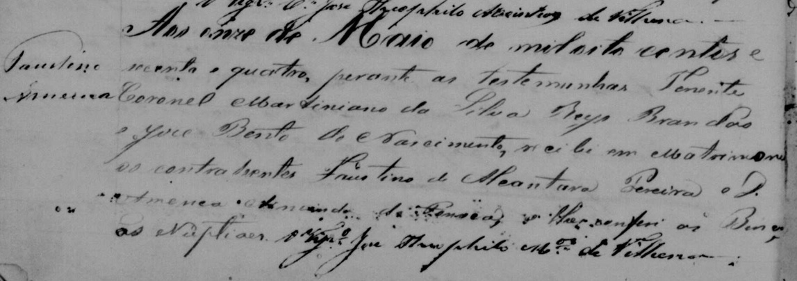 Testemunhas: Tenente Coronel Martiniano da Silva Reys Brandão e Jose Bento do Nascimento