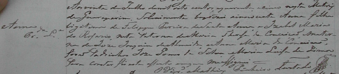 - Anna, batizada no dia 20/07/1845, na Matriz de Guarapari-ES