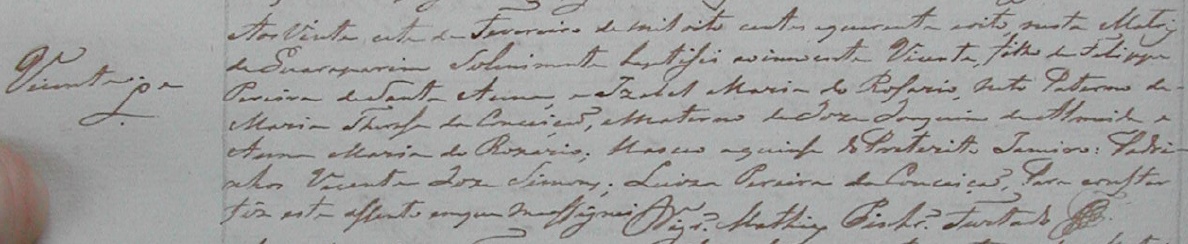 - Vicente, nascido no dia 15/01/1848, batizado no dia 27/02/1848, na Matriz de Guarapari-ES