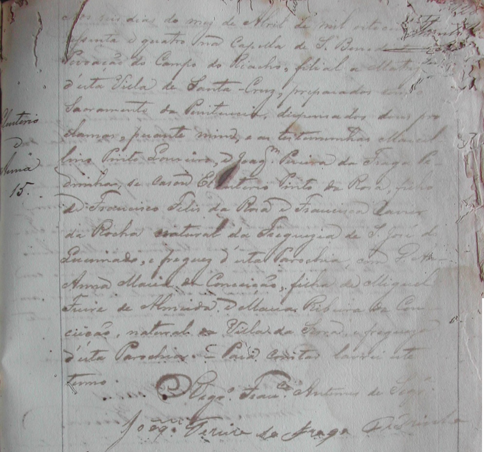 Eleuterio Pinto da Rosa c.c. Anna Maria da Conceição, filha de Miguel Freire de Almeida e Maria Ribeiro da Conceição