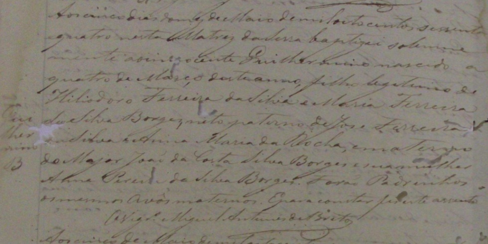 - Guilhermino, nascida no dia 04/03/1864, batizada no dia 05/05/1864, na Matriz da Serra-ES