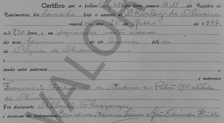 - Shirlei de Oliveira (25/07/1947, às 8,30 horas, branca, em Baixo Guandu-ES)