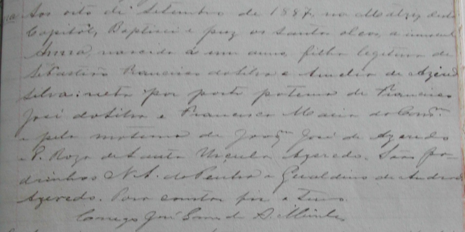 - Anna, nascida á um ano, batizada no dia 08/09/1887, na Matriz de Vitoria-ES