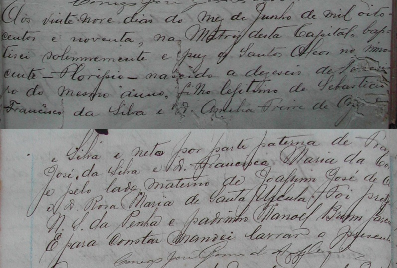 Floripio, nascida no dia 16/02/1890. batizado no dia 29/06/1890, na Matriz de Vitoria-ES