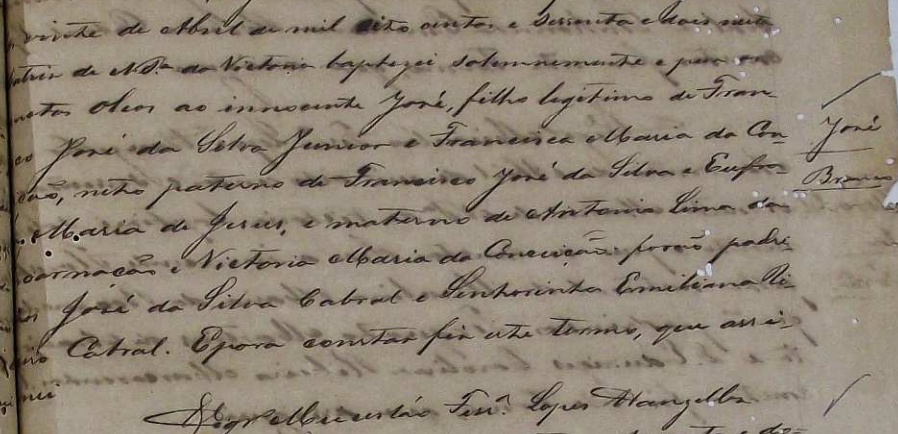 - Francisco Jose da Silva Junior c.c. Francisca Maria da Conceição, filha de Antonio Lima da Encarnação e Victoria Maria da Conceicção