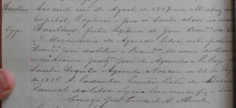 - Raulino, nascido no dia 22/12/1886, batizado no dia 21/08/1887, na Matriz de Vitoria-ES