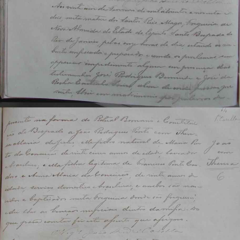 Casaram-se no dia 21/02/1892, na Matriz dos Santos Reis Magos da Vila de Nova Almeida-ES, pelas 11 horas do dia