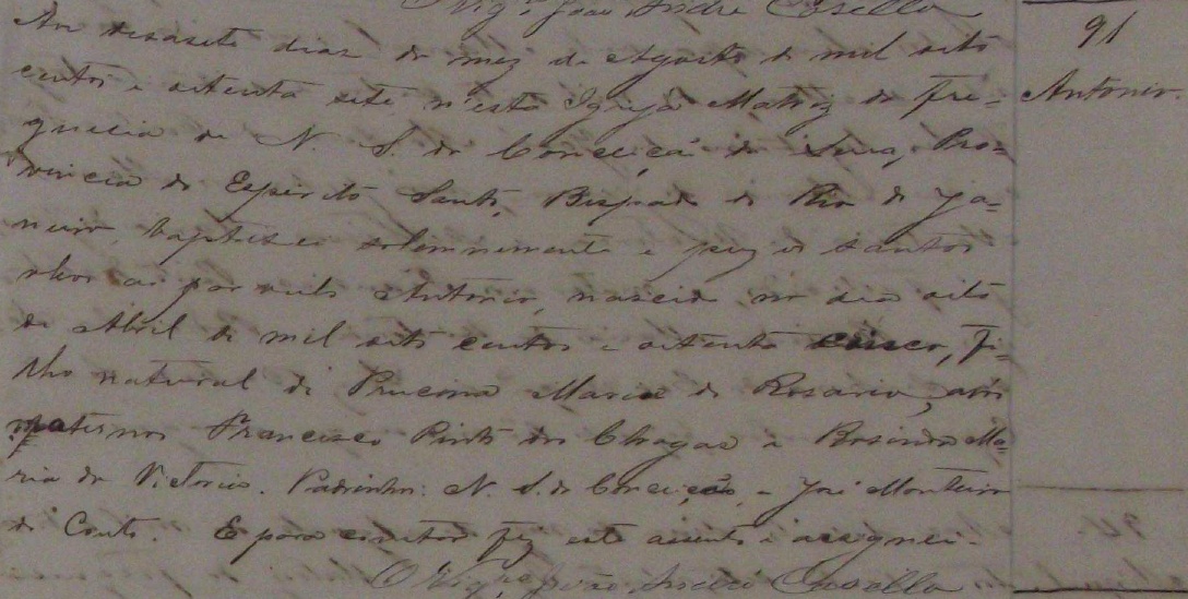 - Antonio (Filho natural), nascido no dia 08/04/1885, batizado no dia 17/08/1887, na Igreja Matriz da Freguezia de Nossa Senhora da Conceição da Serra-ES