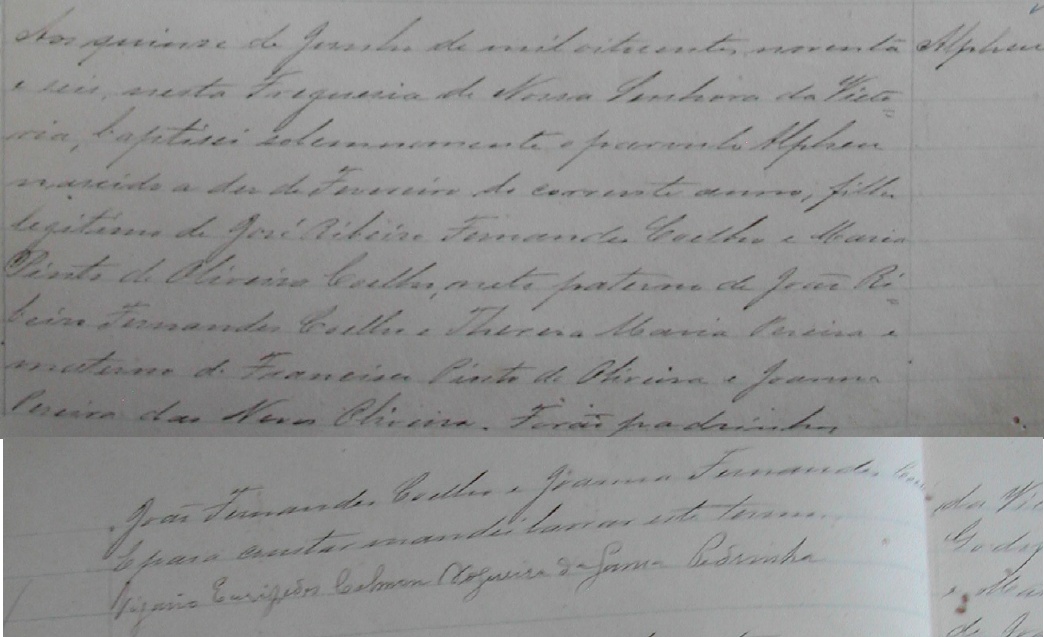 - Alpheu, nascido no dia 10/02/1896, batizado no dia 15/06/1896, na Freguezia de Nossa Senhora da Vitoria-ES