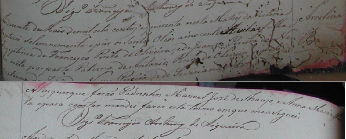 - Avelina, batizada no dia 17/05/1840, na Matriz de Vitoria-ES