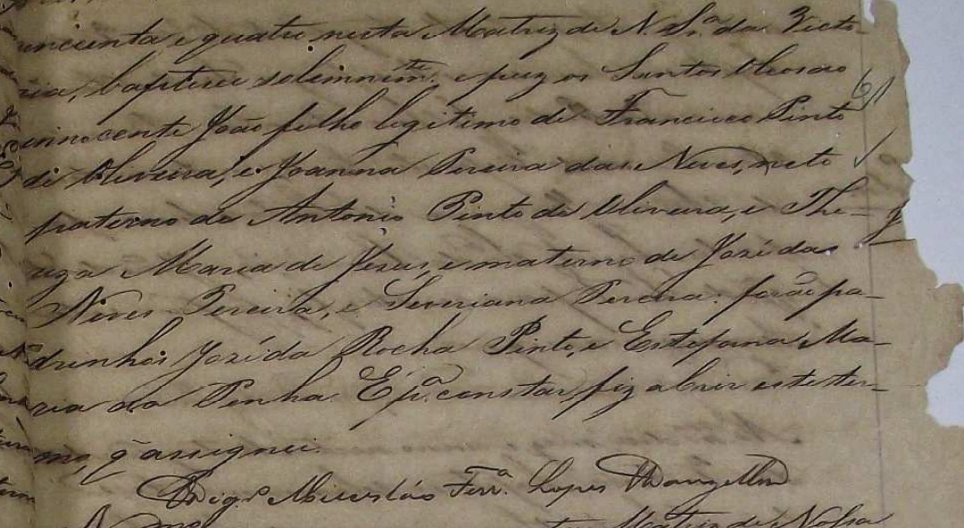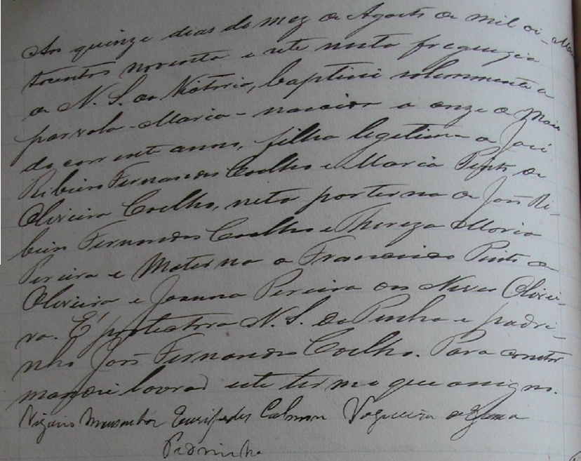 Jose Pinto Oliveira c.c Brazilina Conceição Rodrigues, filha de Francisco Ignacio Rodrigues e Anna Conceição Brandão Rodrigues