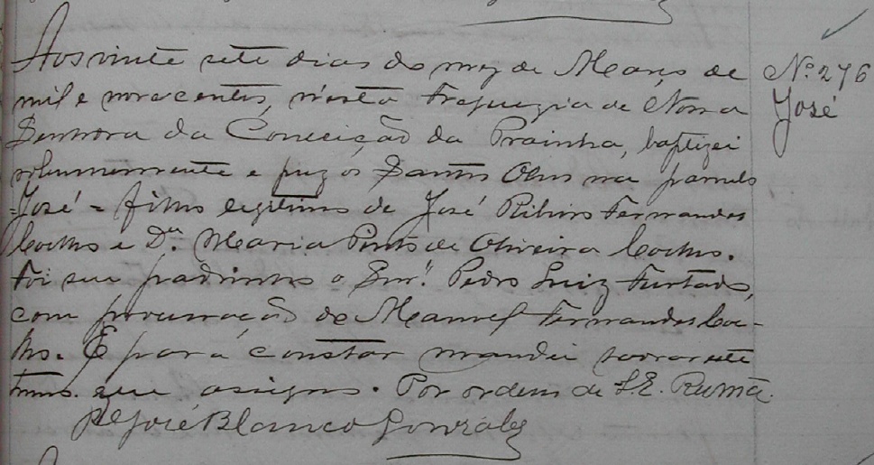 - Jose, batizado no dia 09/04/1847, na Matriz de Vitoria-ES