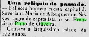 - Gertrudes Pinto de Oliveira, conforme jornal abaixo (falecimento do irmão Antonio Pinto de Oliveira, em 1889)