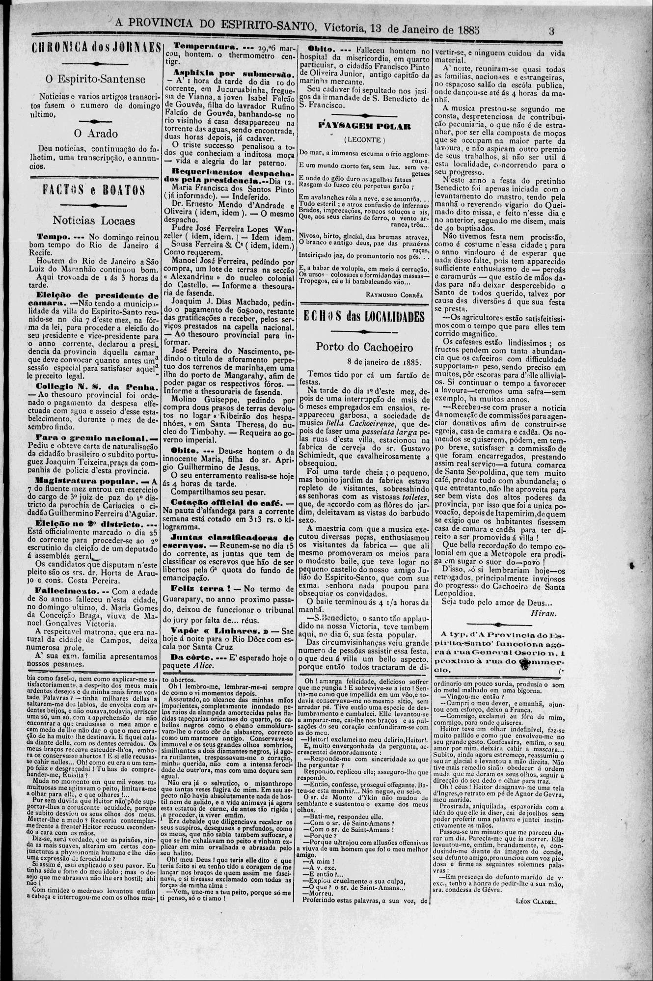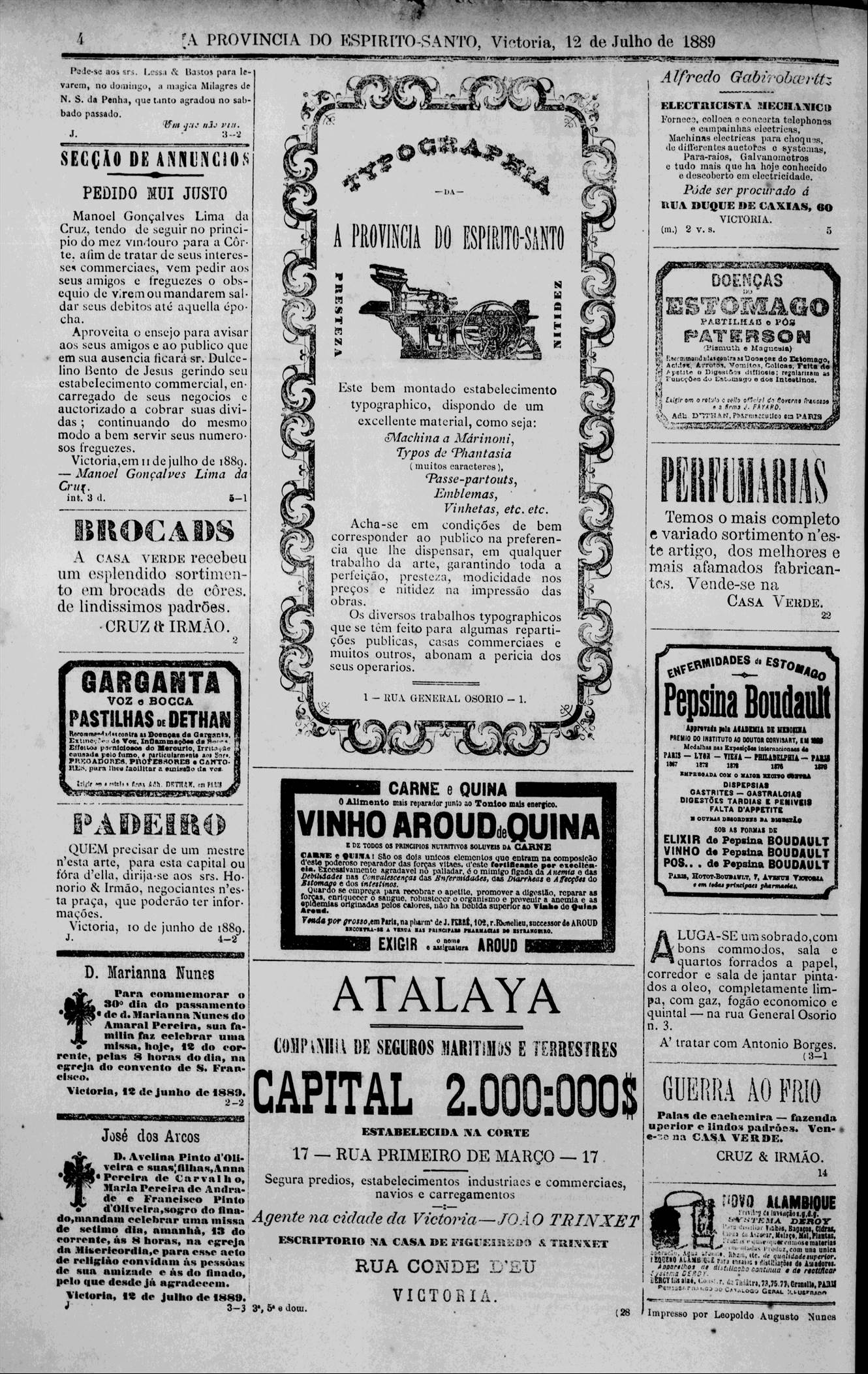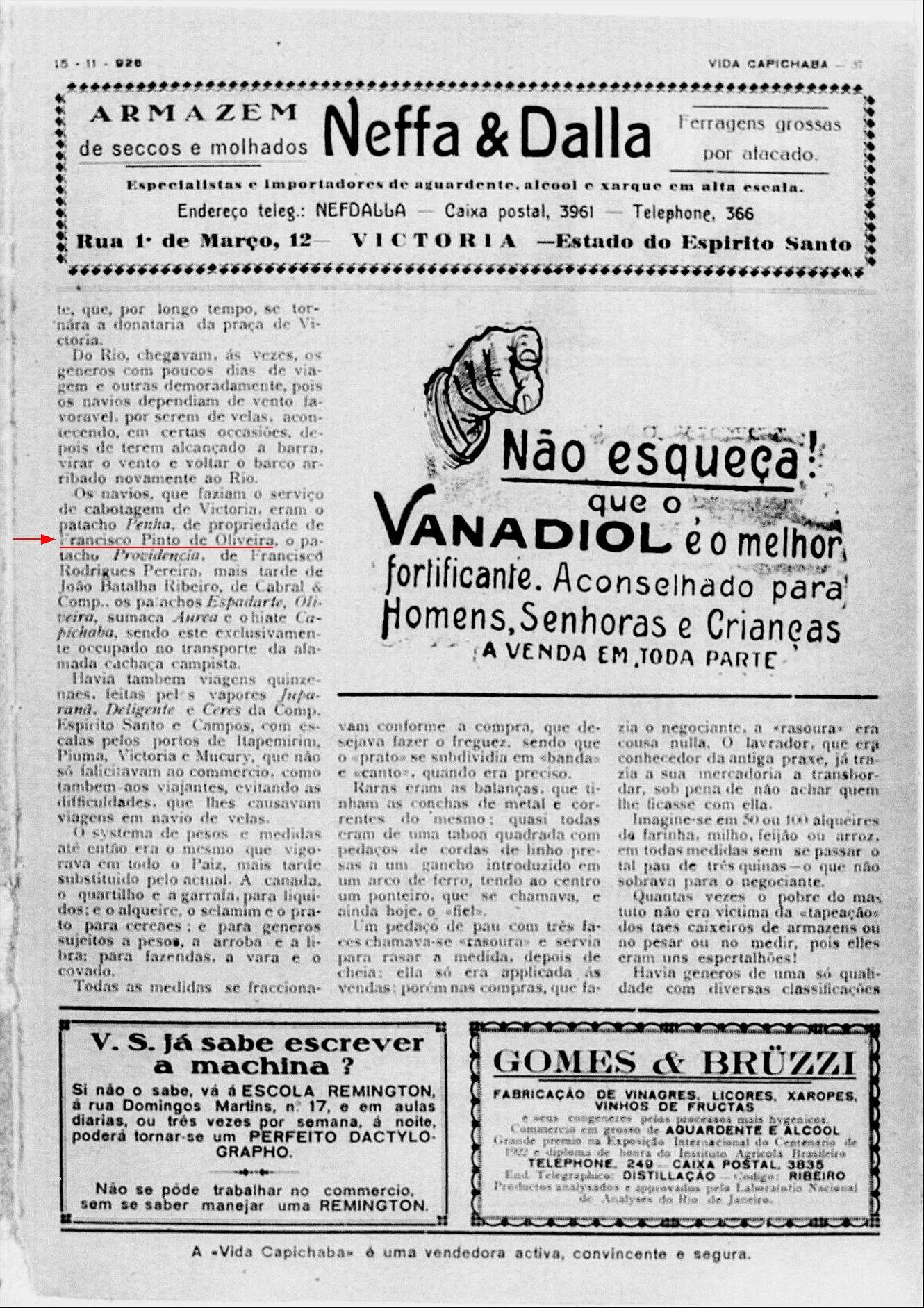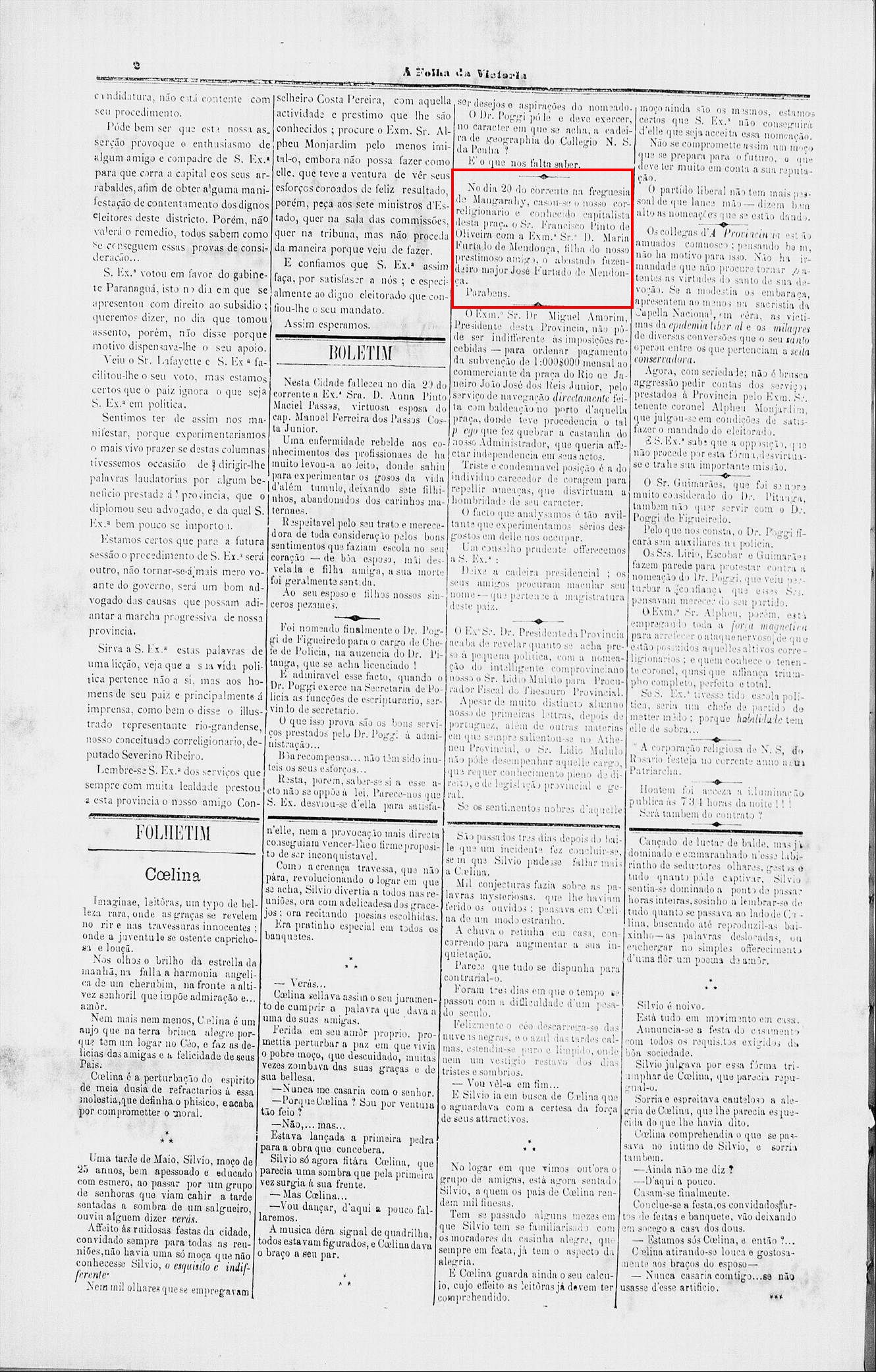 (Nota no Jornal da Vitoria em 1864)