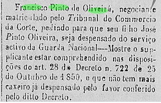 1876 - Comerciante Francisco Pinto de Oliveira