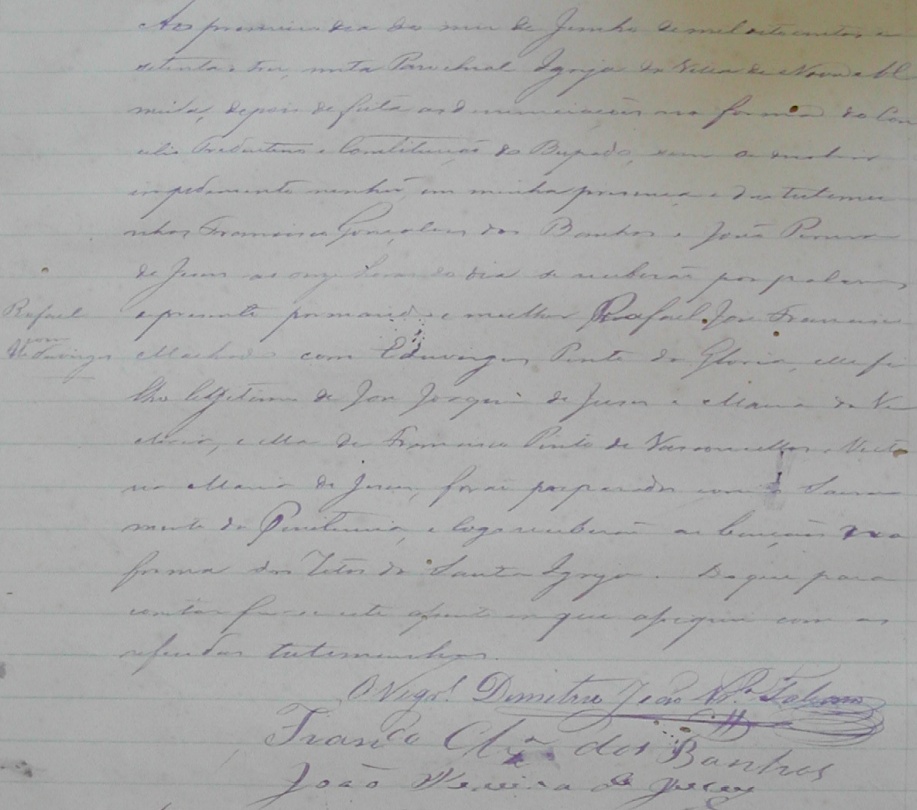 - Eduvirges Pinto da Gloria c.c. Rafael Jose Francisco Machado, filho de Jose Joaquim de Jesus e Maria da Victoria da Conceição