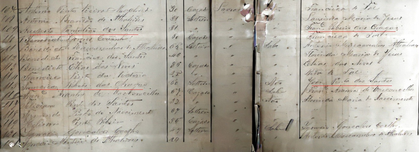 - Francisca Ribeiro das Chagas c.c. Francisco Jose Martins Paixão, filho de Jose Martins da Silva Paixão e Maria Nunes da Conceição