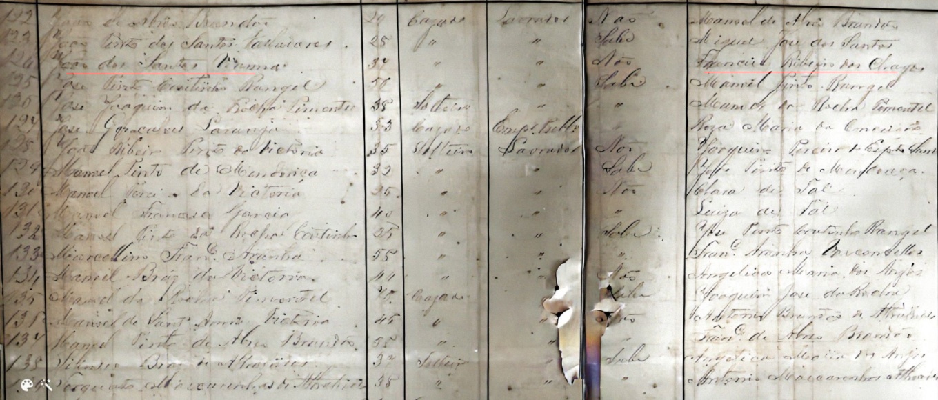 Em 1878 estava com 31 anos, solteiro, lavrador, não sabia ler e escrever, filho de Francisco Ribeiro das Chagas,