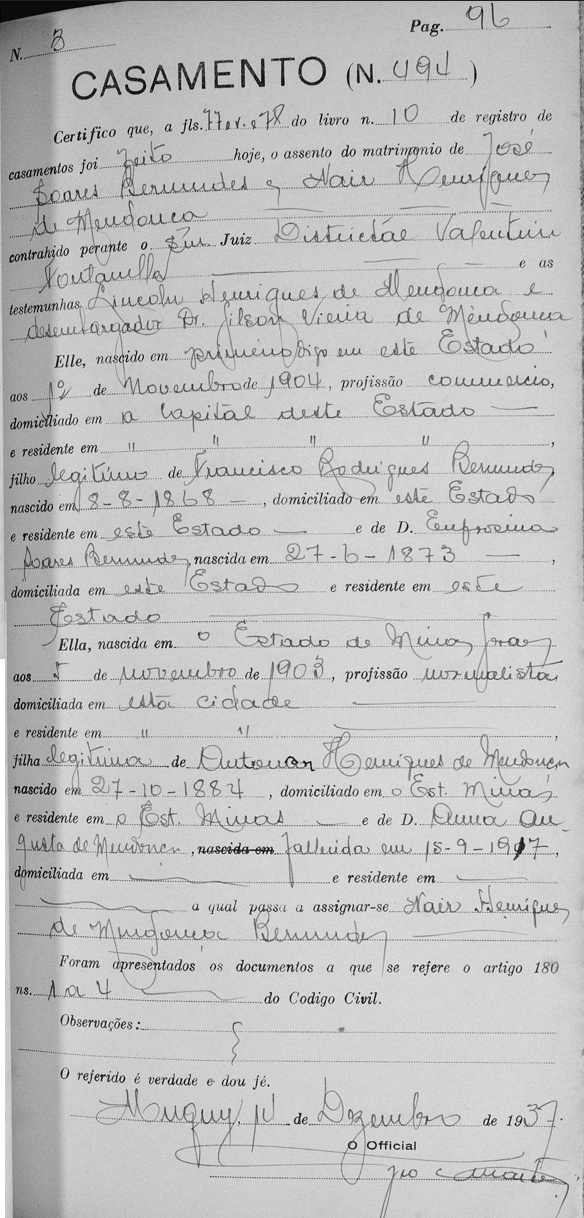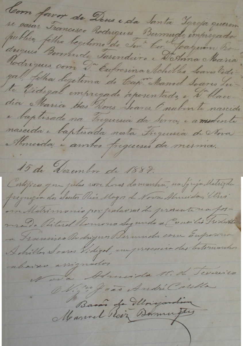 Casaram-se no dia 15/02/1890, na Igreja Matriz da feguezia dos Santos Reis Magos de Nova Almeida-ES