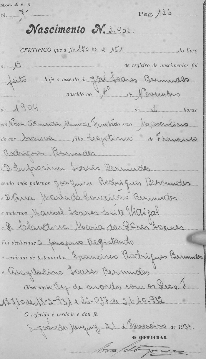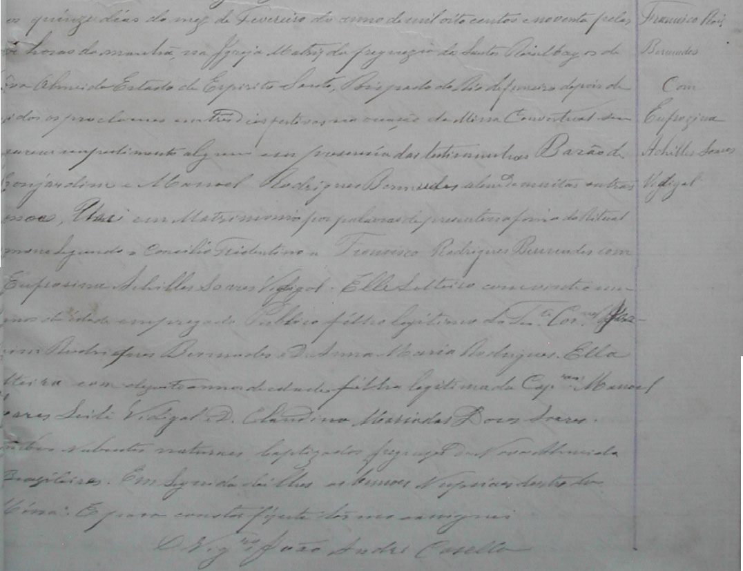 Testemunhas: Barão de Monjardim e Manoel Rodrigues Bermudes