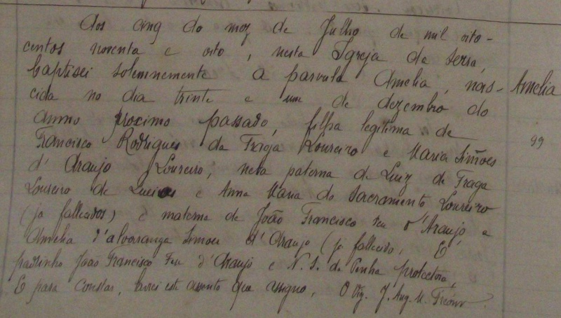 - Amelia, nascida no dia 31/12/1897, batizada no dia 05/07/1898, na Igreja da Serra-ES