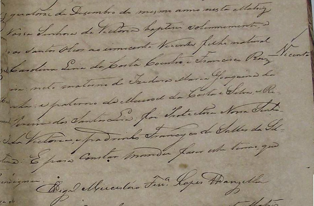 - Vicente (filho natural), batizado no dia 14/12/1856, na Matriz de Nossa Senhora da Vitoria-ES