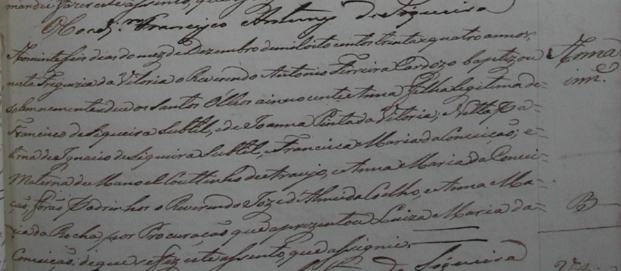 Anna, batizada em 26/12/1834, Vitória -ES Padrinhos:Reverendo Jose Almeida Coelho e Anna Maria da Rocha por procuração que apresentou Luiza Maria da Conceição