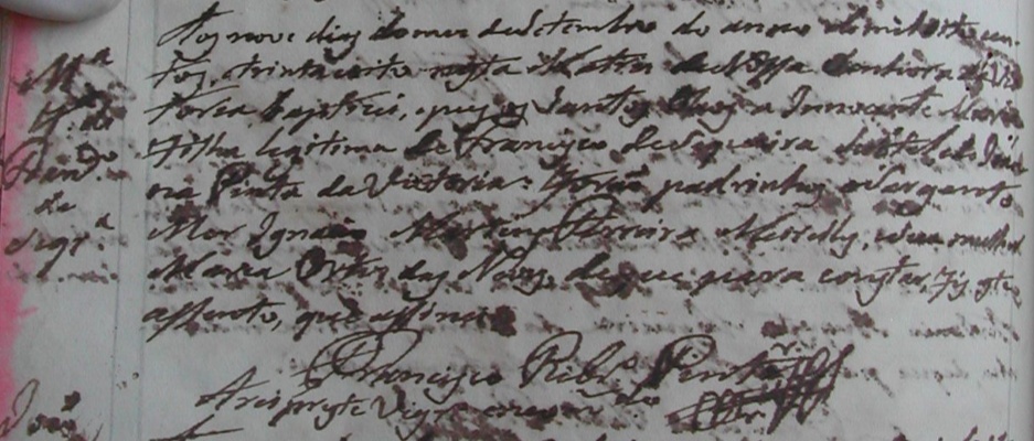Maria, batizada no dia 09/09/1838, na Matriz de Vitoria-ES Padrinhos: Sargento Mor Ignacio Martins Ferreira Meirelles e sua mulher Maria Ortiz das Neves