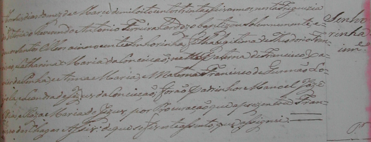 - Senhorinha (P), batizada no dia 06/03/1836, na Matriz de Vitoria-ES