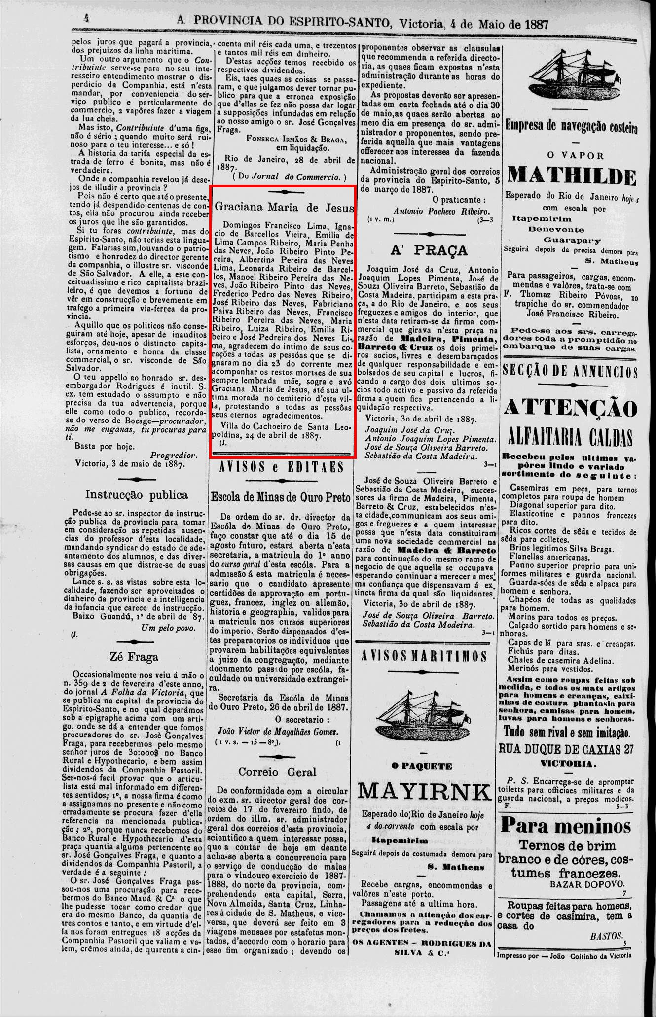 - Domingos Francisco Lima, 29 anos em 1878, cazado, lavrador, conforme Lista de eleitores de Queimados-ES, registro 320