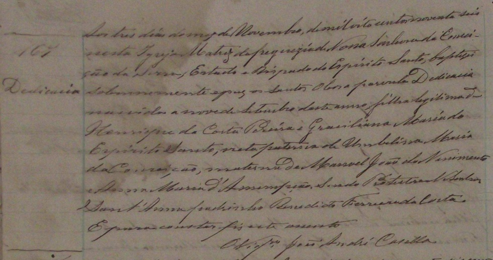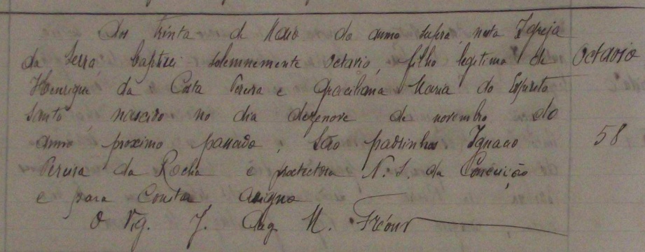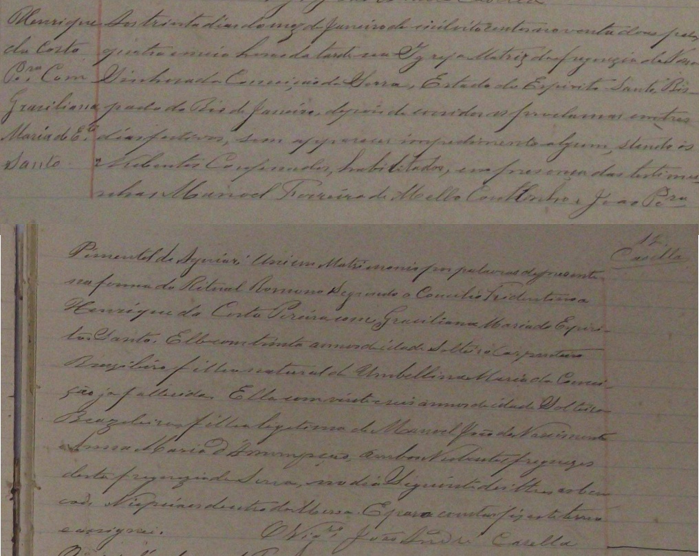 Casaram-se no dia 30/01/1892, pelas 4 e meia horas da tarde, na Igreja Matriz da Freguezia de Nossa Senhora da Conceição da Serra-ES