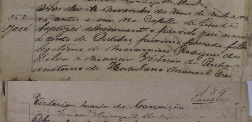 - Nocencia Victoria da Penha c.c. Marcimino Rodrigues da Silva, filho de (Hipótese) Joaquim Rodrigues da Silva e. Ephiphania Thereza de Jesus