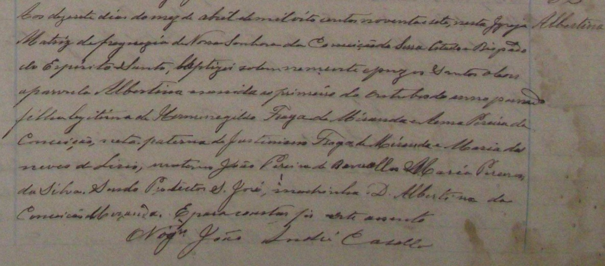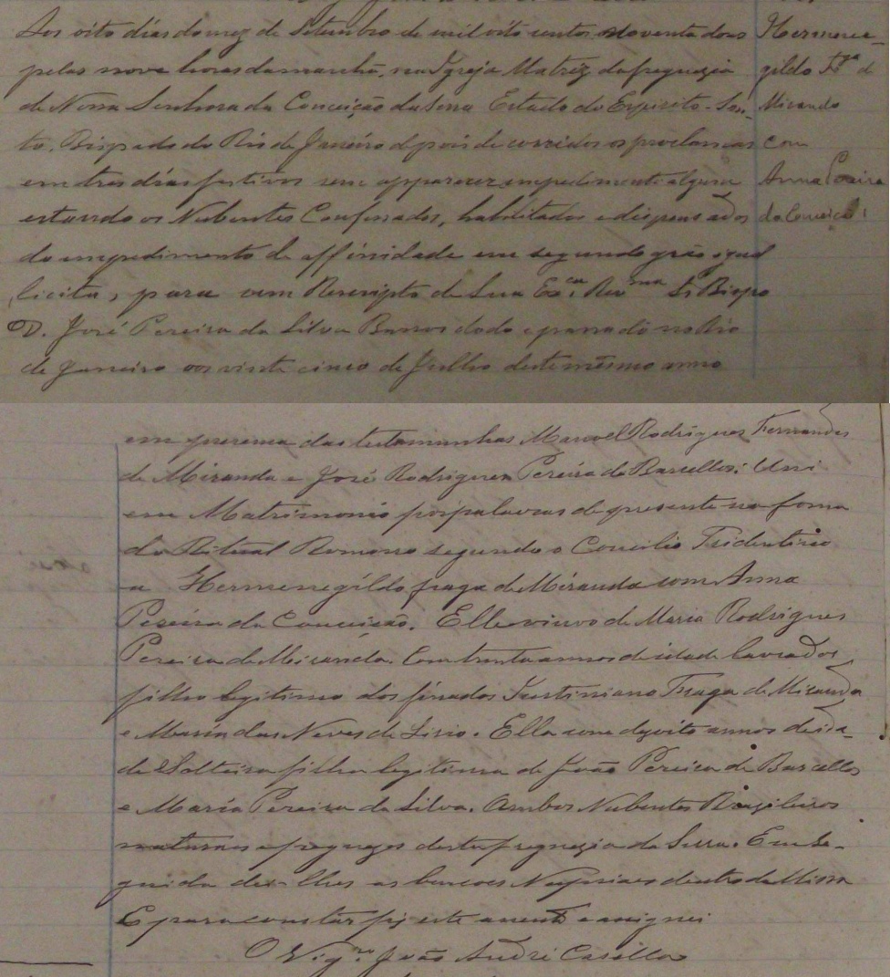 Maria Rodrigues Pereira, com 30 anos de idade e ela com 18 anos de idade, ambos naturais da Serra-ES