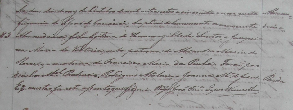 - Alexandrina, batizada no dia 02/10/1859, na Freguezia de São João de Cariacica-ES
