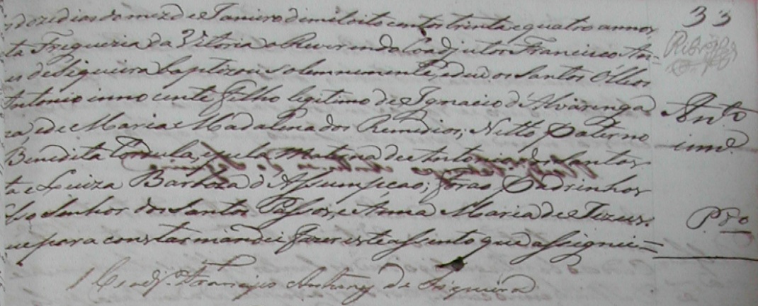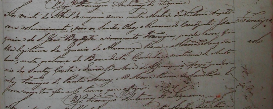 Antonio, batizado no dia 12/01/1834, na Matriz de Vitoria-ES